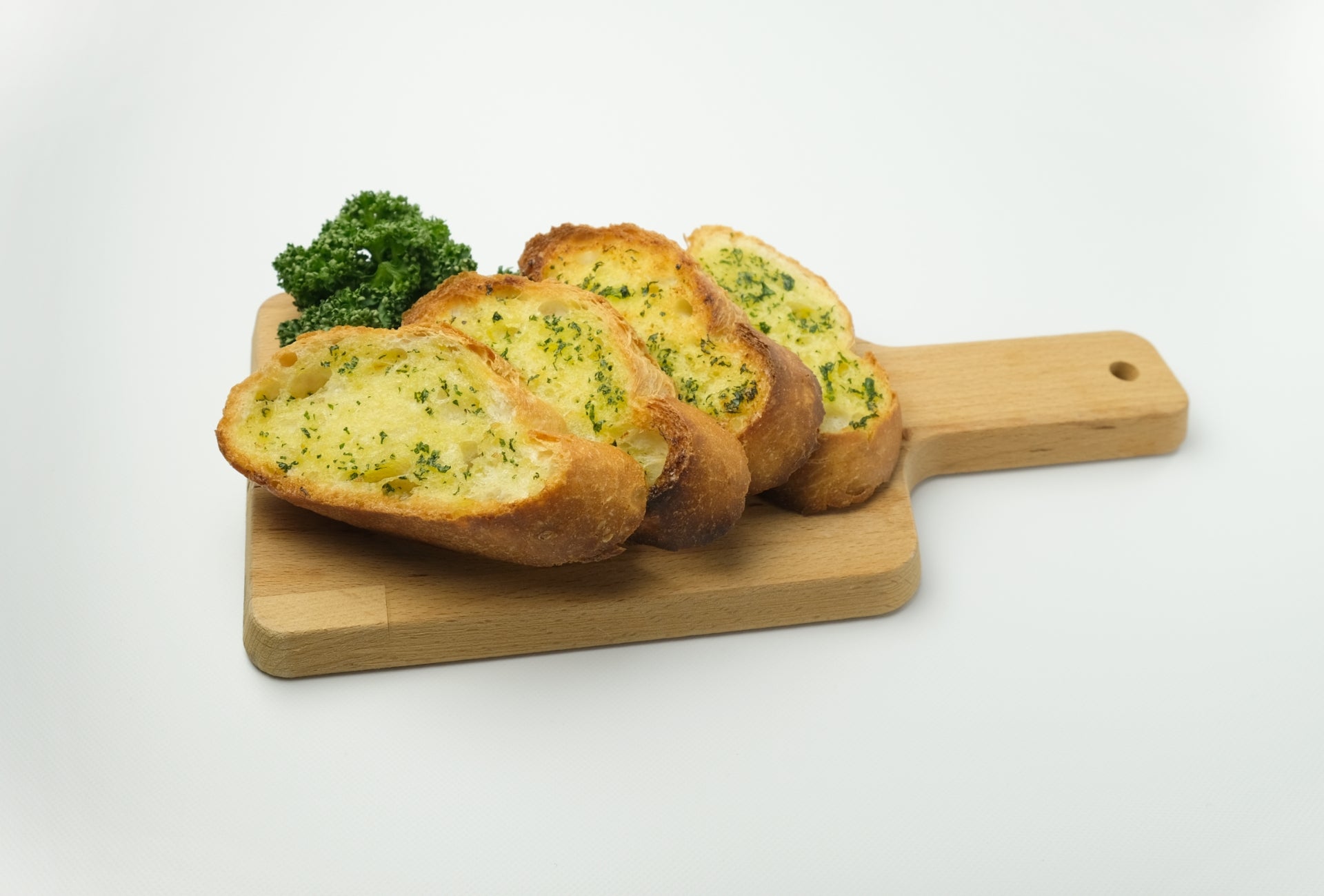 チューブでは味わえない、香りのよい生のにんにくで作るガーリックトーストは格別。